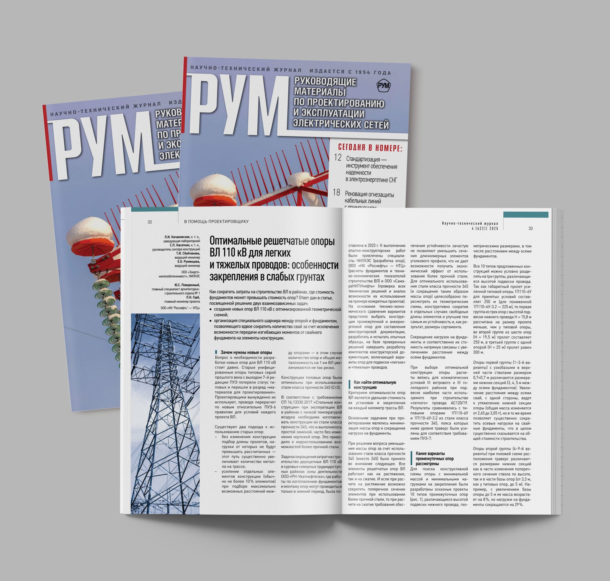 В научно-техническом журнале «Руководящие материалы по проектированию и эксплуатации электрических сетей» опубликована статья «Оптимальные решетчатые опоры ВЛ 110 кВ для…